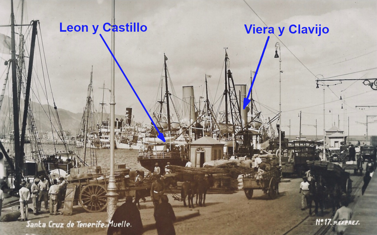 Santa Cruz de Tenerife. El atracado entre el Leon y Castillo y el muelle era el Viera y Clavijo, identificado por Javier Careaga