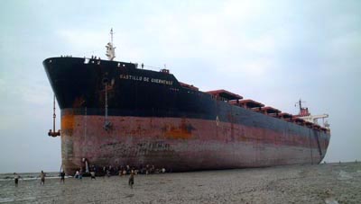 Fue desguazado en el 2002 en Chittagong. En esta foto le vemos ya en seco sobre la playa, listo para ser desguazado.