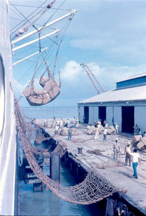Esta y las dos siguientes son en Puerto Plata (República Dominicana). En ellas se ve como era la carga general en aquellos años, totalmente diferente del tráfico actual de contenedores.