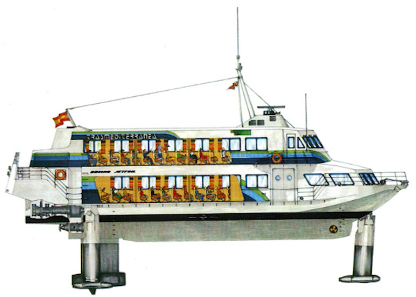 Tenían capacidad para 286 pasajeros. Para su propulsión tenían tambien turbinas de gas de 9.000 CV y chorros de agua, que en pruebas les dieron 43 nudos.
