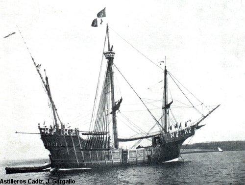 El contrato se firmó el 28 de Diciembre de 1927 y el buque se entregó a la Armada el 4 de Mayo de 1929. Tras realizar las pruebas reglamentarias de navegación y vela, el 13 de Abril de 1929, la carabela partió para Sevilla al mando del teniente de navío Julio Guillén Tato. Fue construída en maderas nobles yestuvo dotada de estandartes y gallardones de época. (J.L.Gutierrez Molina).